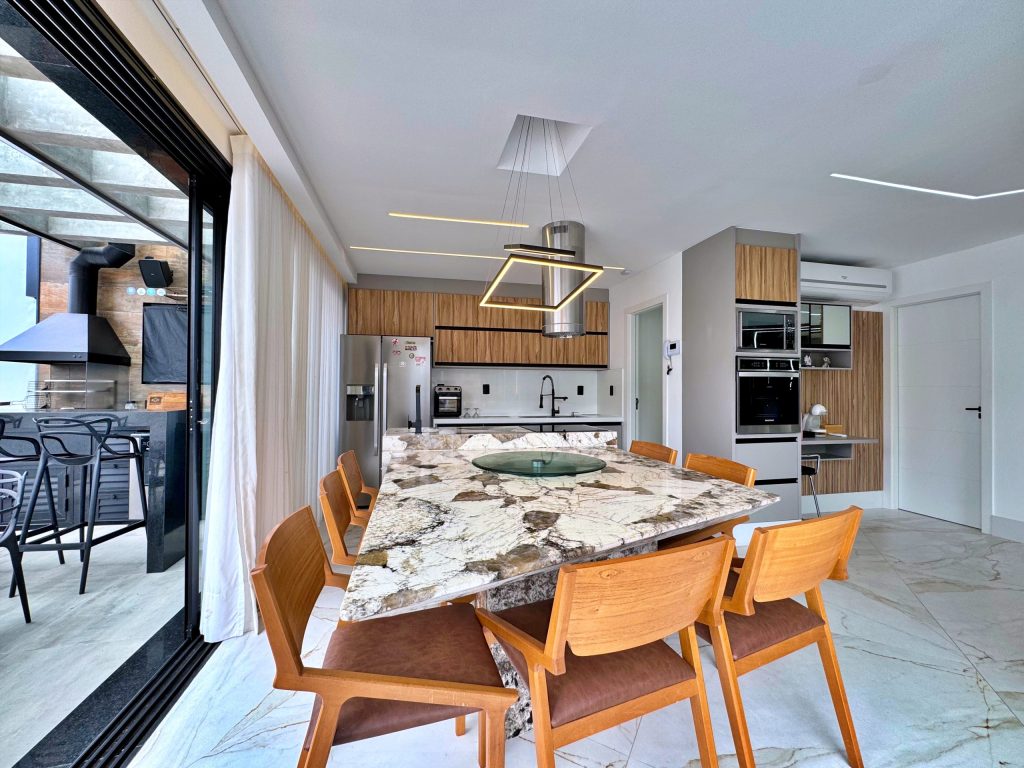2 pavimentos, 4 vagas, 3 suites – sendo 2 com closet e varanda, sala ampla integrada com cozinha, lavanderia, área gourmet, piscina, ótimo espaço crianças e animais.